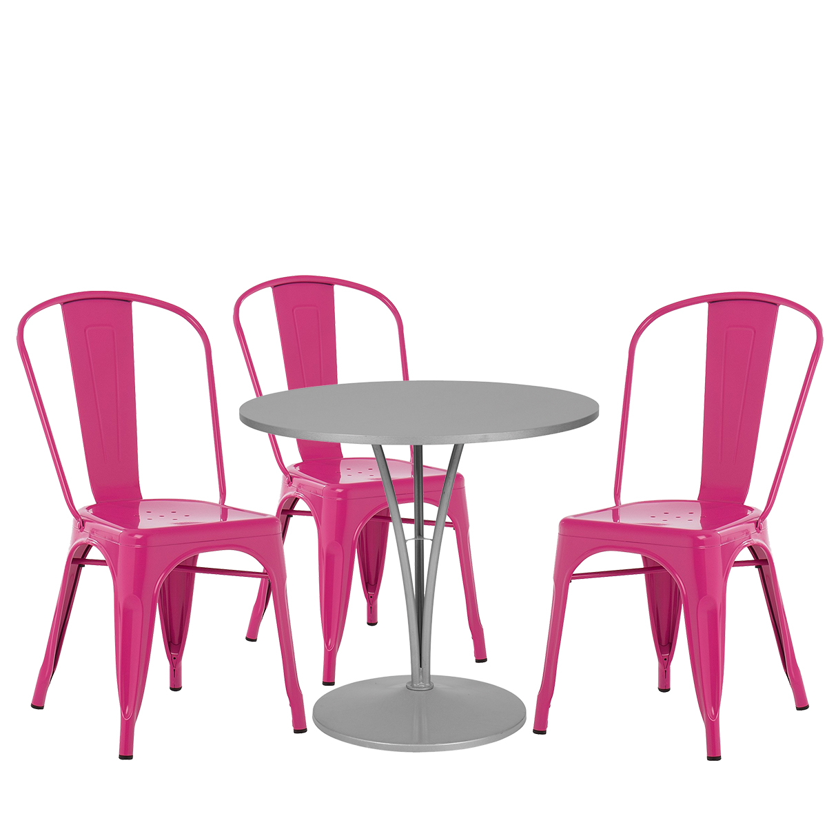 Composition : 1 table TRILOGIE Ø80 blanche + 3 chaises TONIC roses.