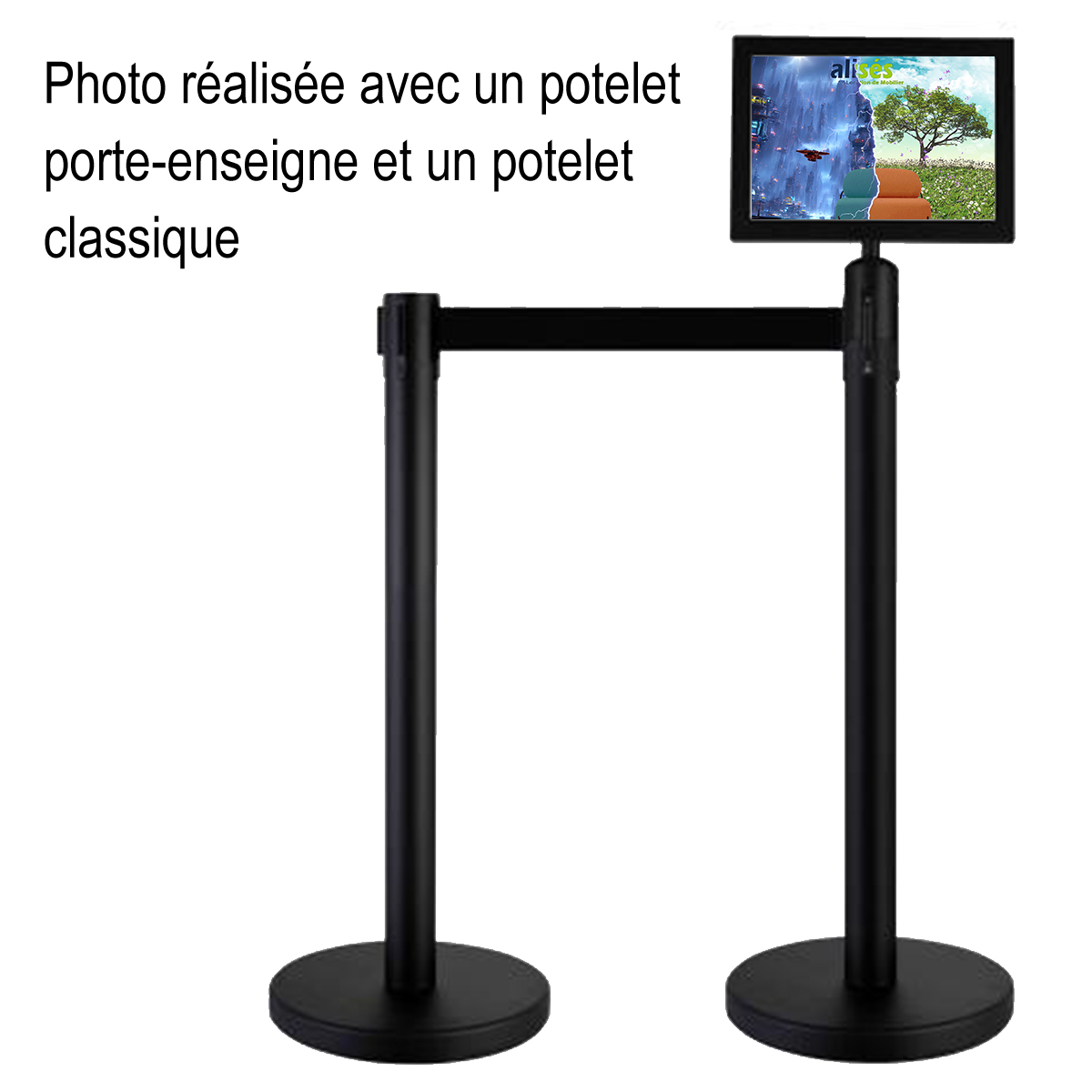 Le potelet enrouleur 2 mètres avec porte-enseigne sera idéal pour délimiter un espace sur votre stand, tout en privilégiant votre identité visuelle.Format de l'affiche : A4 paysage.